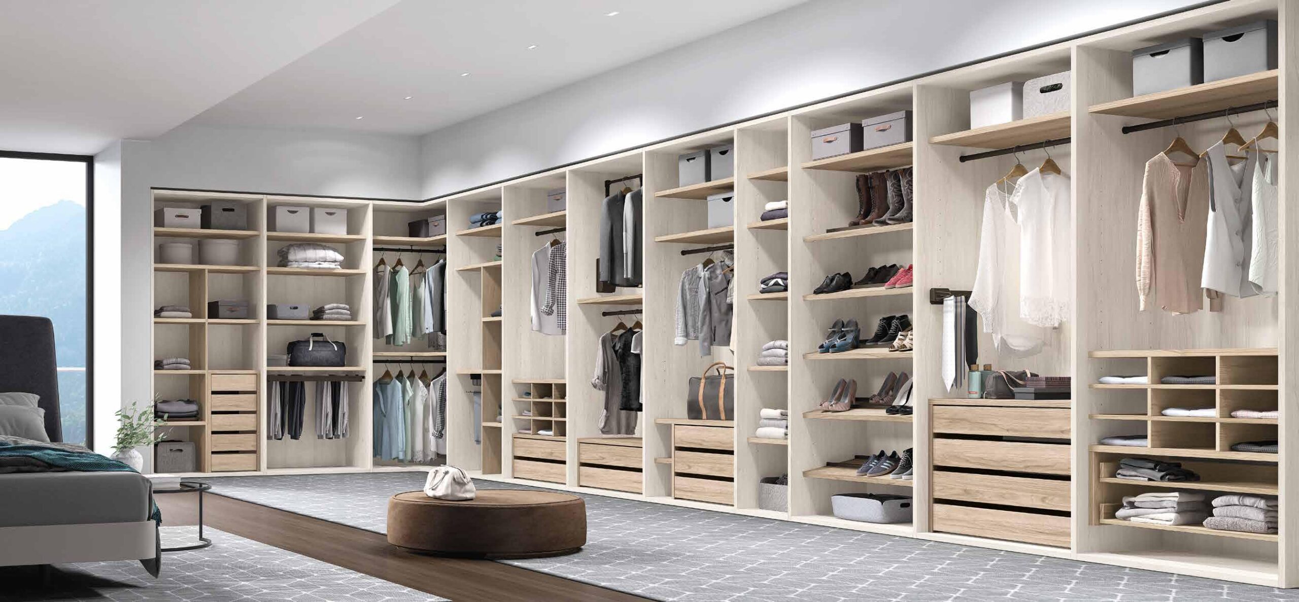 Armario Vestidor de Matrimonio EOS-02 es una colección de muebles de dormitorio que presenta el efecto de comodidad más contemporáneo en acabados y concepto del lugar, aportando soluciones prácticas y de calidad en el diseño de su habitación de matrimonio.