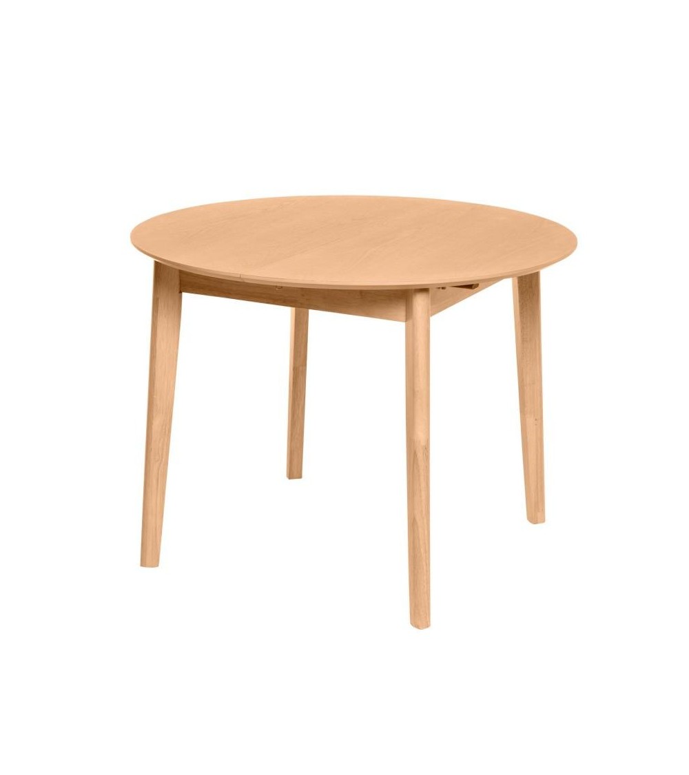 Mesa Liana de Somcasa: Mesa redonda extensible ø 100 (100 x 130) x 76 cm con tapa MDF y patas en madera de hevea.